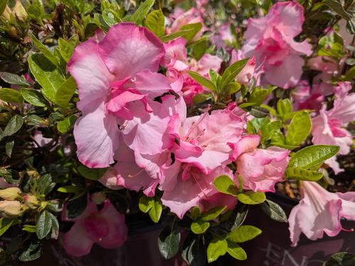 - Two-tone semidouble pink blooms